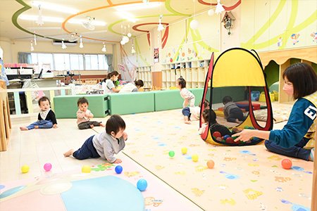 | 開園時間・休園日 | 開園時間 7:00~19:00 ※分園は18:00まで 延長保育 18:00~19:00 ※分園児は園バスで本園へ移動し 19:00まで合同保育 休園日:日曜・祝日・年末年始 |