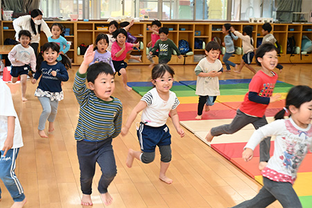 | 入所定員 (令和7年4月~) | 【本 園】定員167名 0歳 みるく組 12名 1歳 本園まんま組16名 2歳 とまと組 ぷちとまとグループ16名 みにとまとグループ15名 3歳 さくら組 ぼたんざくらグループ18名 やえざくらグループ18名 4歳 ひかり組 ひかり1グループ18名 ひかり2グループ18名 5歳 ぎんが組 ぎんが1グループ18名 ぎんが2グループ18名 ☆0歳(生後8週)~5歳(就学前) ----------------------------------------- 【分 園】定員15名 1歳 分園まんま組15名 ☆分園は1歳児クラスと一時保育の施設です。 2歳児クラス進級から5歳児クラスの卒園まで、 本園に在籍・通園となります。 |